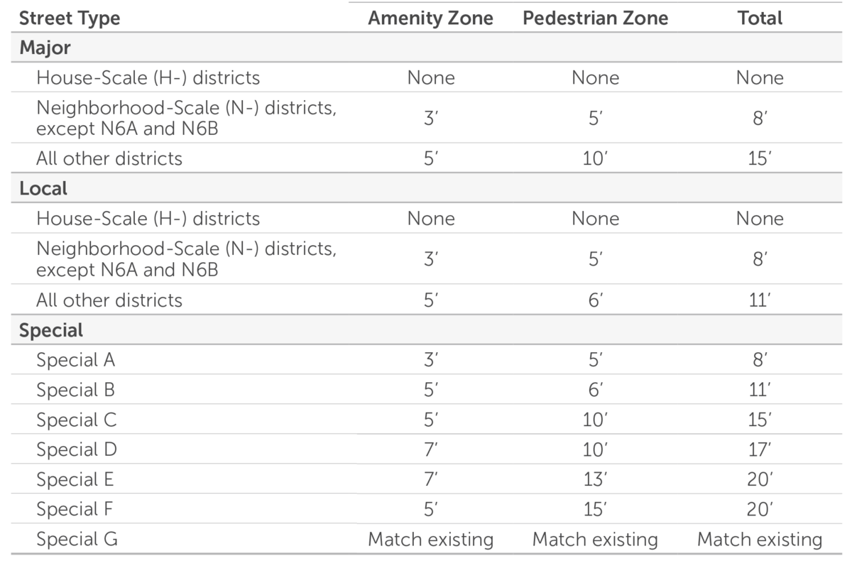 The street types—and their corresponding standards—are shown below.